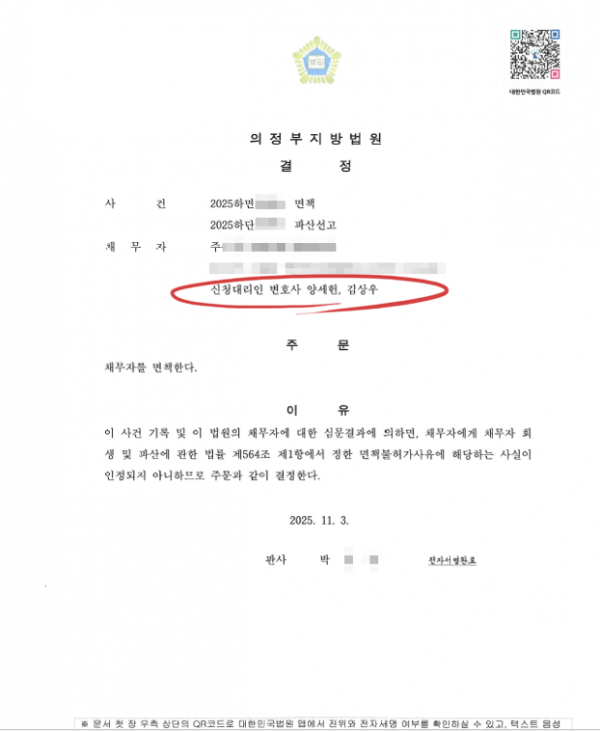 회생·파산 개인파산_면책결정[개인채무 90%]