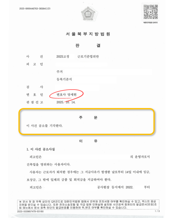 형사 [형사 사건] 근로기준법 위반_공소기각사례